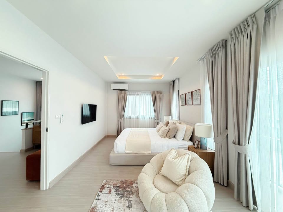 A modern, spacious family home located in the peaceful and secure Supalai Lake Ville community. This beautifully finished house offers bright living spaces, quality built-in features, and practical upgrades such as EV-charger wiring and an automatic gate. Perfect for families seeking comfort, safety, and convenience in one of Koh Kaew’s most desirable residential neighborhoods.